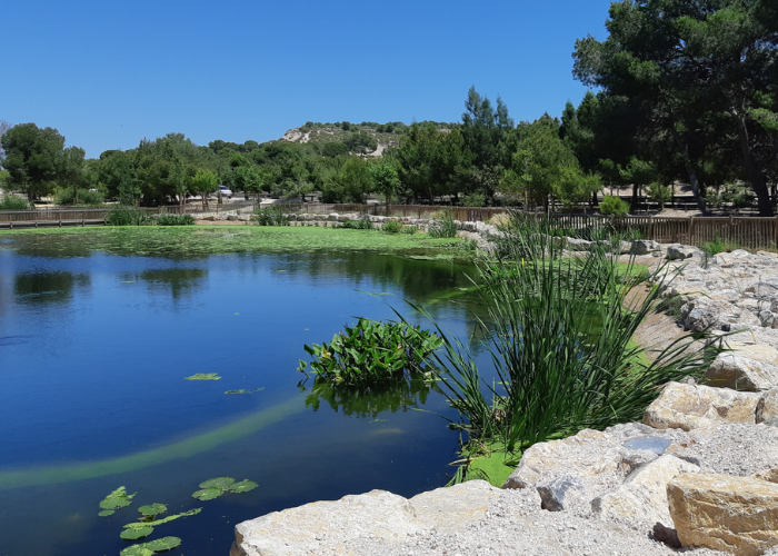 Las Soluciones basadas en la Naturaleza son otra de las apuestas de Hidraqua para adaptarse al cambio climático con mayor resiliencia y frenar la pérdida de biodiversidad. Es el caso del parque El Recorral de Rojales (Alicante) cuya principal función es mitigar el riesgo de vertidos en caso de lluvias torrenciales. Allí se han construido cinco lagunas artificiales con agua regenerada, dando lugar a un nuevo paisaje donde prospera una gran variedad de vegetación y fauna salvaje.